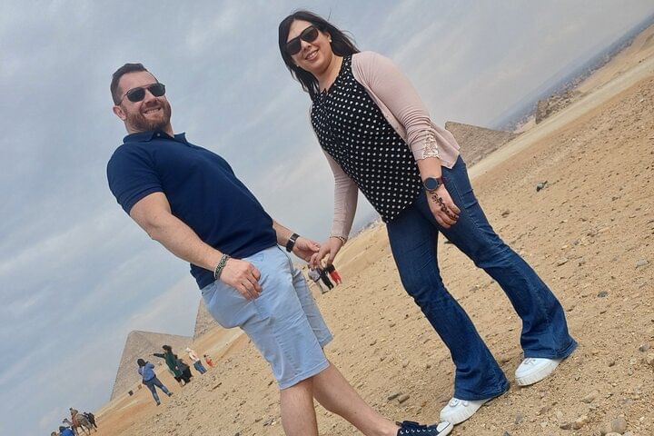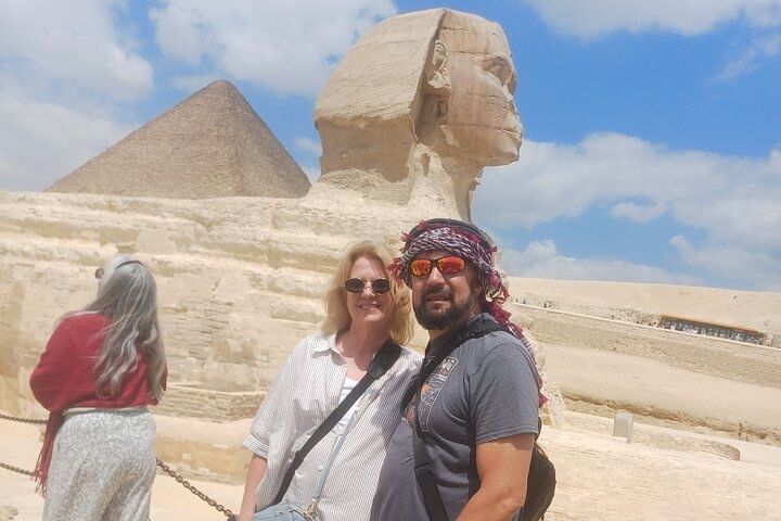 Discover the Great Pyramid, Khafre, and Menkaure, stand before the legendary Sphinx, and enjoy a scenic camel ride for authentic desert adventure.